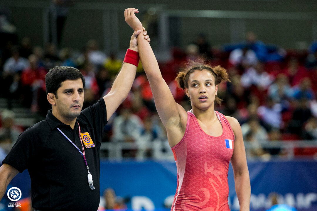 Koumba LARROQUE (FRA) will wrestle for her first senior world gold medal after edging Tamyra MENSAH (USA) 2-1 in the semifinals at 68kg. All the points scored in the match came from the shot clock. Larroque scored first off the shot clock and took a 1-0 lead into the break. Mensah took the lead in the second period off the shot. With just over 20 seconds remaining, Larroque scored the go-ahead point off the shot clock and held on for the victory.