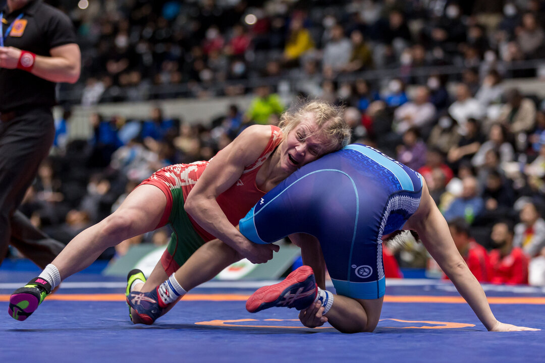 A bloody and bruised Hristova made her way to the finals by beating Belarus’ Katsiaryna YANUSHKEVICH in the semifinals. The 2016 European bronze medalist trailed by three points with seconds remaining when she scored a takedown and immediately went into a gut wrench, picking up the 7-6 victory.