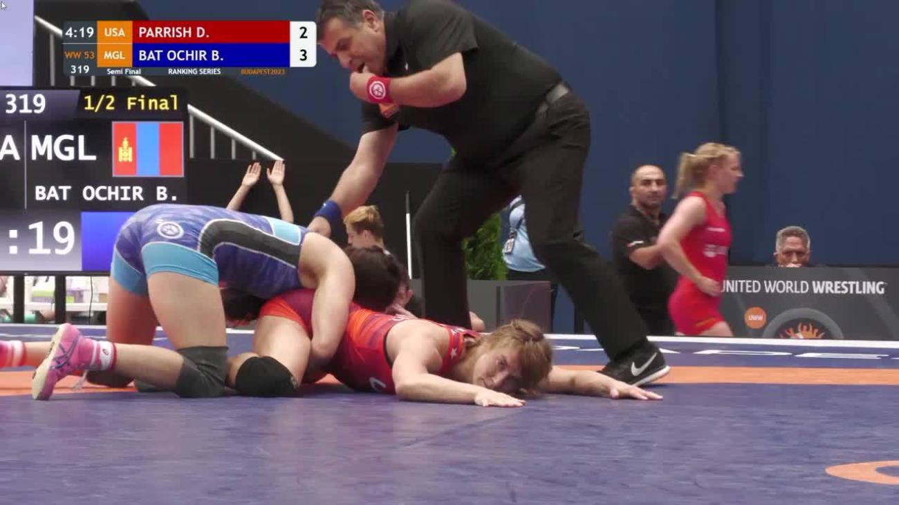 Bolortuya BAT OCHIR (MGL) qualified for Tokyo Olympics by winning 6-woman weight class at Asian Olympic qualifying tournament. Went 1-1 in group, then defeated Meng Hsuan HSIEH (TPE) by fall in semifinals to earn Tokyo ticket. Awarded victory by injury default in final over Tatyana AKHMETOVA-AMANZHOL (KAZ), who beat her in 10-9 thriller in group stage....Competed at 55kg at 2019 World Championships and won bronze medal. Lost in quarterfinals to Jacarra WINCHESTER (USA), who also qualified for Tokyo at 53kg. Beat Bediha GUN (TUR) 12-9 in bronze-medal match....Bronze medalist at 2019 and 2020 Ivan Yarygin Grand Prix. In 2020, lost to Umi IMAI (JPN) 4-2 in quarterfinals, beat Aleksandra SKIRENKO (RUS) 10-0 for bronze....5th at 2018 World U-23 Championships...Started wrestling after physical education teacher took her to judo and sambo tournament in 2010, and she later won a bronze medal in a district sambo championship. But she switched to wrestling in 2011 because the club was closer...Self-proclaimed fan of Saori YOSHIDA (JPN)...The third of four sisters.