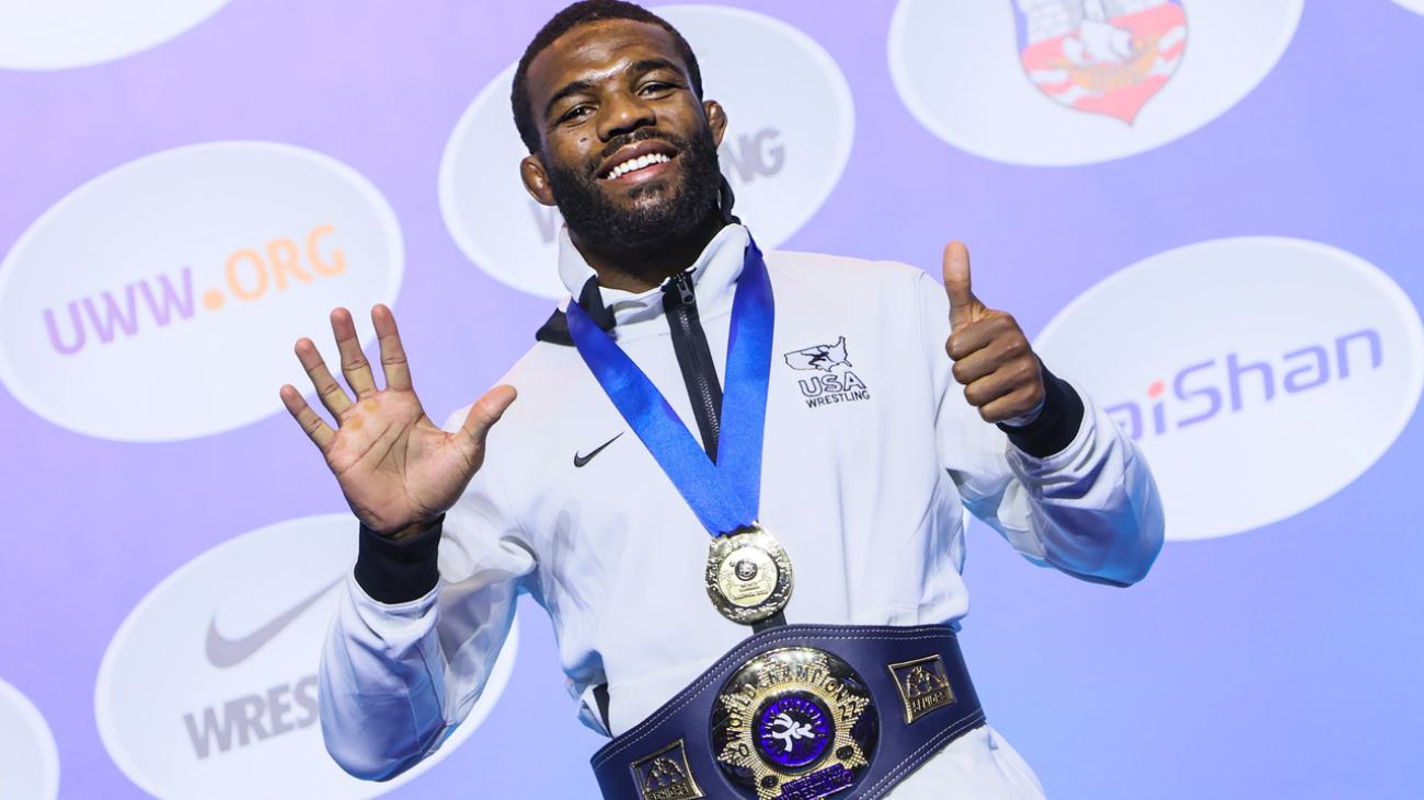 Jordan Burroughs (born July 8, 1988) is an American freestyle wrestler and former folkstyle wrestler. In freestyle wrestling, Burroughs is an Olympic champion and four-time world champion. In folkstyle wrestling, Burroughs was a two-time NCAA Division I national champion, and was awarded the Dan Hodge Trophy as the most outstanding wrestler in college wrestling.